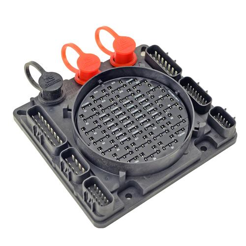 The Flexible Electrical Center (FLEC) is a configurable power distribution module suitable for handling the many electrical circuits found on heavy-duty commercial vehicles. The FLEC accommodates circuit protection components in a compact footprint and can be programed to your application to create a "plug-and-play" system.