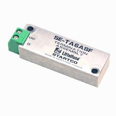 Compact 12-W ground-check termination assembly with convenient mounting holes and screw terminals.